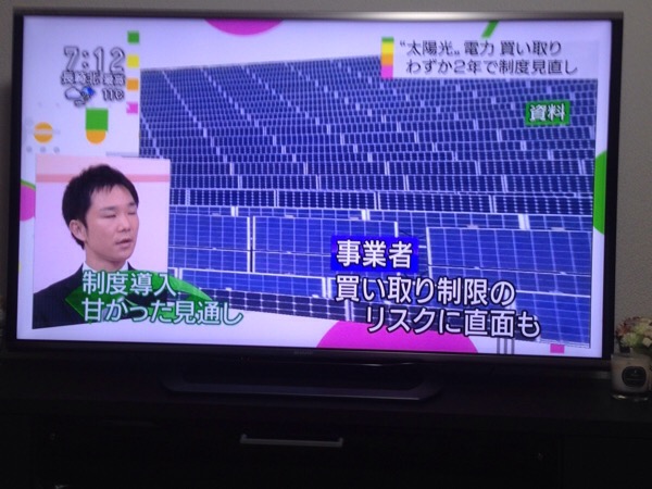 昨夜、経済産業省が出した再生可能エネルギーの買い取り制度見直しの内容についてWBSであってましたので撮影しました…
